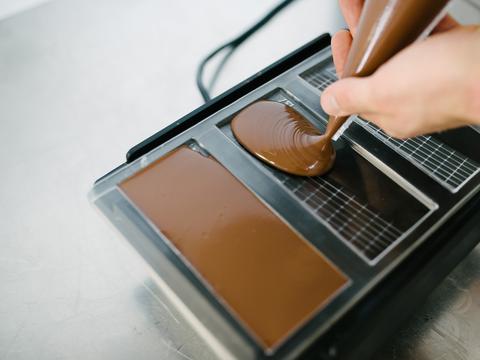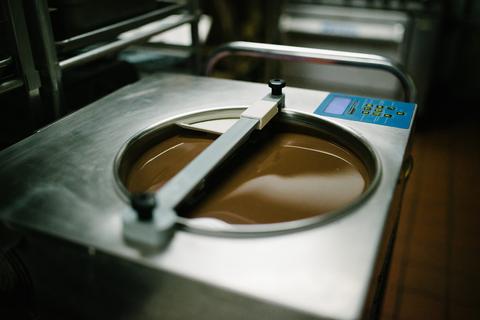 In this stage, the solid nibs are ground to a smooth paste and start to resemble the chocolate we all know and love. The process of reducing the particle size of the nibs and sugar mixture is known as "refining".